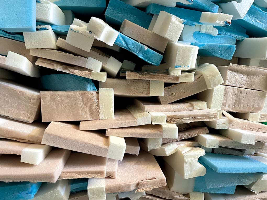 Green Foam today can be counted among the most virtuous Italian companies in terms of recycling obtained from PU foam block waste. Green Foam today can be counted among virtuous Italian companies as regards recycling processed raw materials obtained from foam block waste.